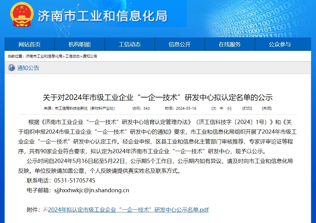 根據《濟南市工業企業“一企一技術”研發中心培育認定管理辦法》(濟工信科技字〔2024〕1號)》和《關于組織申報2024市級工業企業“一企一技術”研發中心的通知》要求,市工業和信息化局組織開展了2024年市級工業企業“一企一技術”研發中心認定工作。經企業申報、區縣工業和信息化主管部門審核推薦、專家評審論證等程序,濟南科德智能科技有限公司被認定為“一企一技術”研發中心。